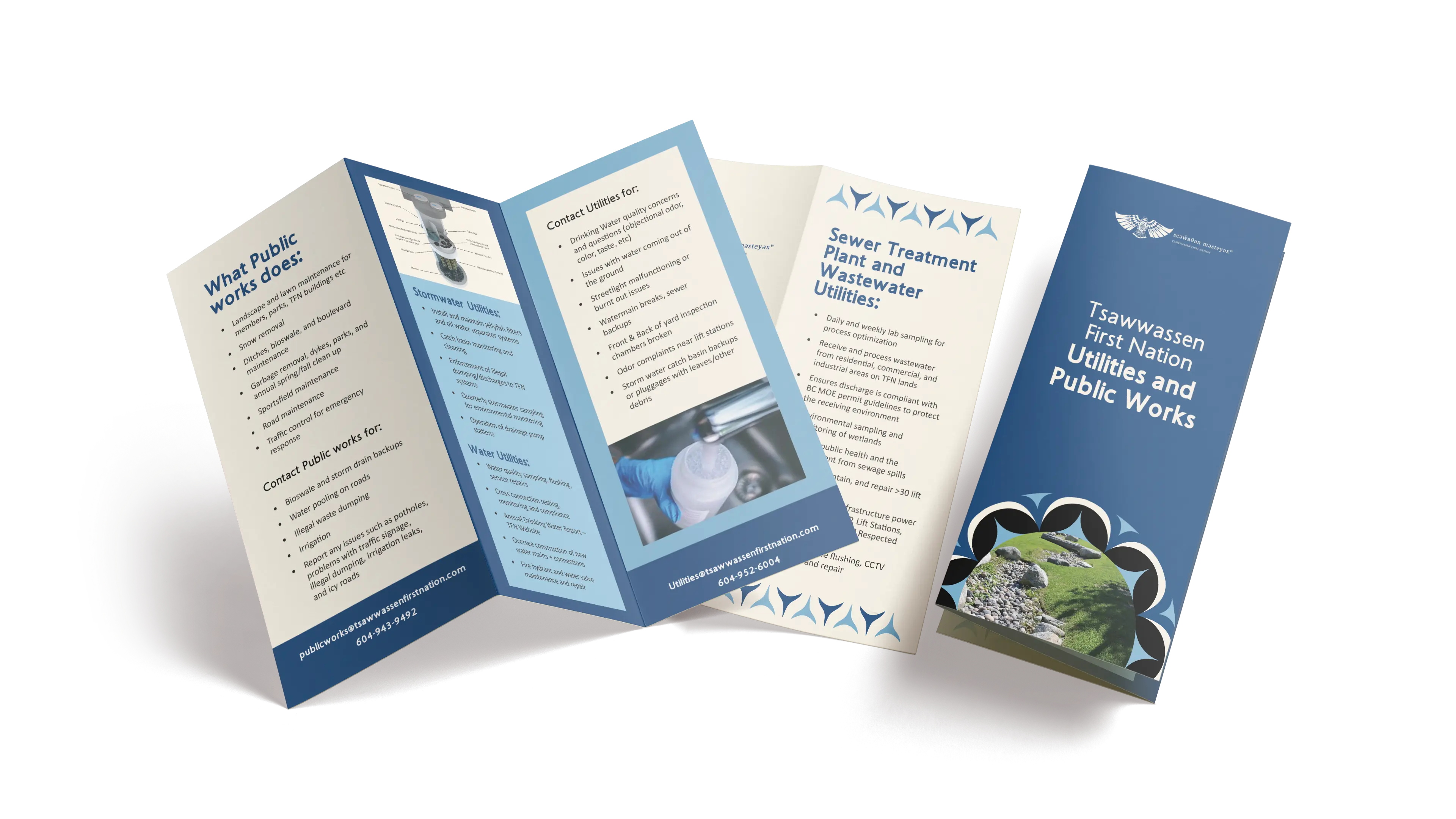 scəẁaθən məsteyəxʷ (Tsawwassen First Nation) is a self-governing Coast Salish Nation and Treaty government. As the Nation continues to plan, build, and implement new initiatives, effective communication has become essential for both Members and external partners. To support this work, scəẁaθən məsteyəxʷ partnered with us to produce print materials that strengthen credibility and keep people informed.